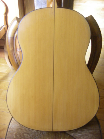 Ce luthier de Grenade est mythique, et j'ai toujours rêvé de posséder un de ses instruments classiques. Bien que celui-ci soit construit pour le flamenco, j'ai littéralement sauté sur l'occasion lorsque l'on me l'a proposé. Etrangement pour un instrument de ce type, la table est en cèdre, et la touche en palissandre, ce qui me fait dire qu'il s'agirait probablement d'une commande spéciale.